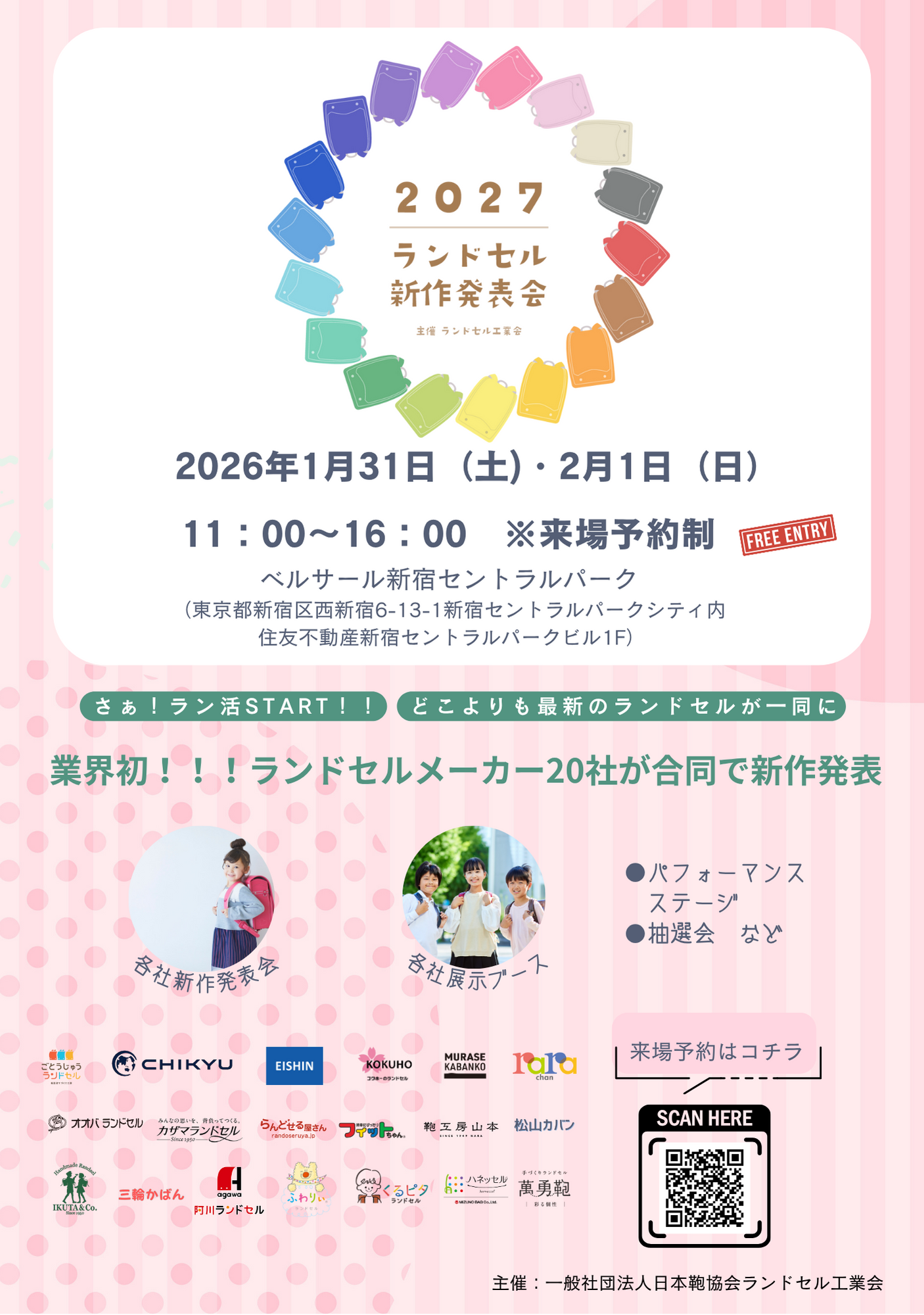 2026年1月31日(土)・2月1日(日)の2日間、東京・新宿にて「2027 ランドセル新作発表会」が開催されます。
